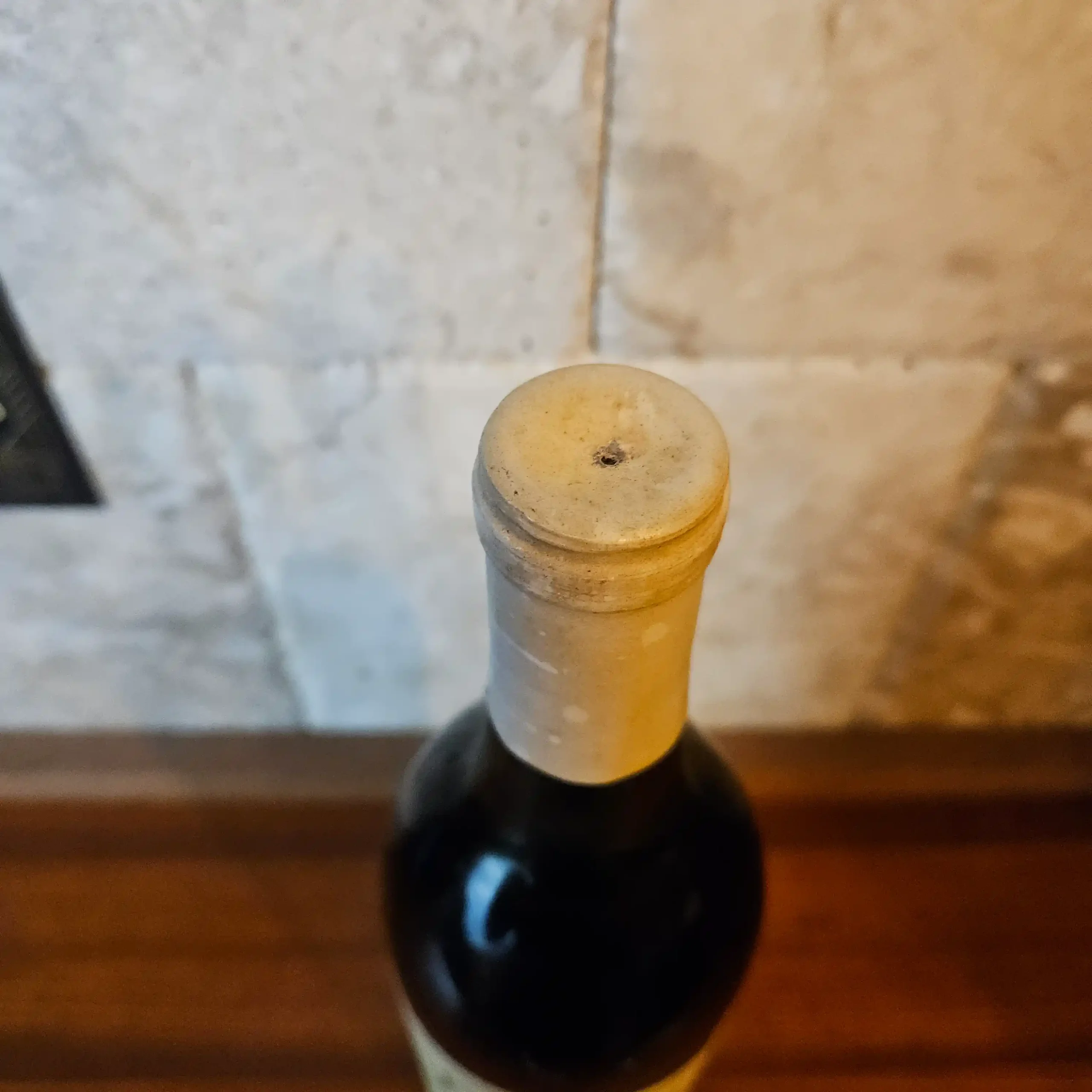 Always stored on its side in a climate-controlled cellar.