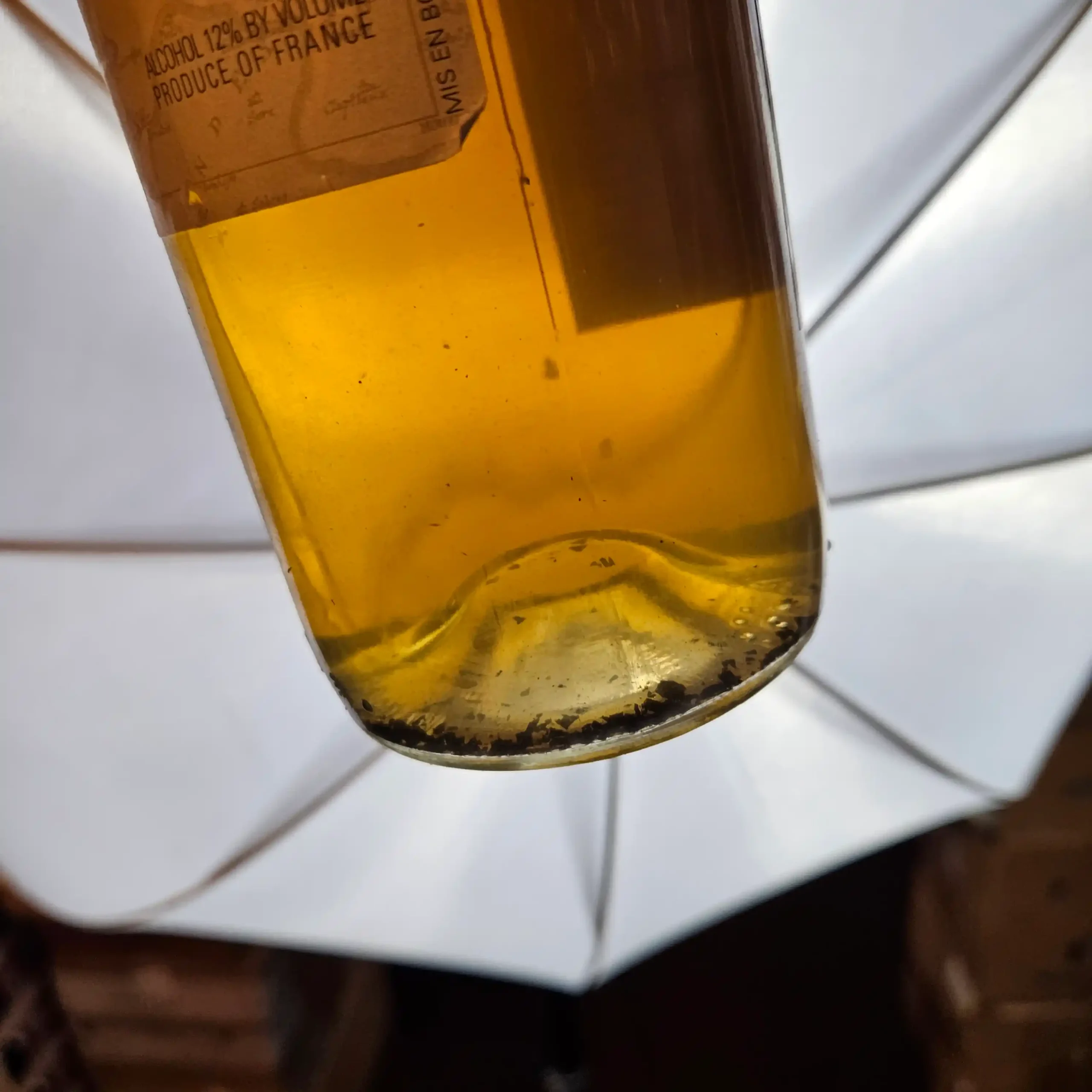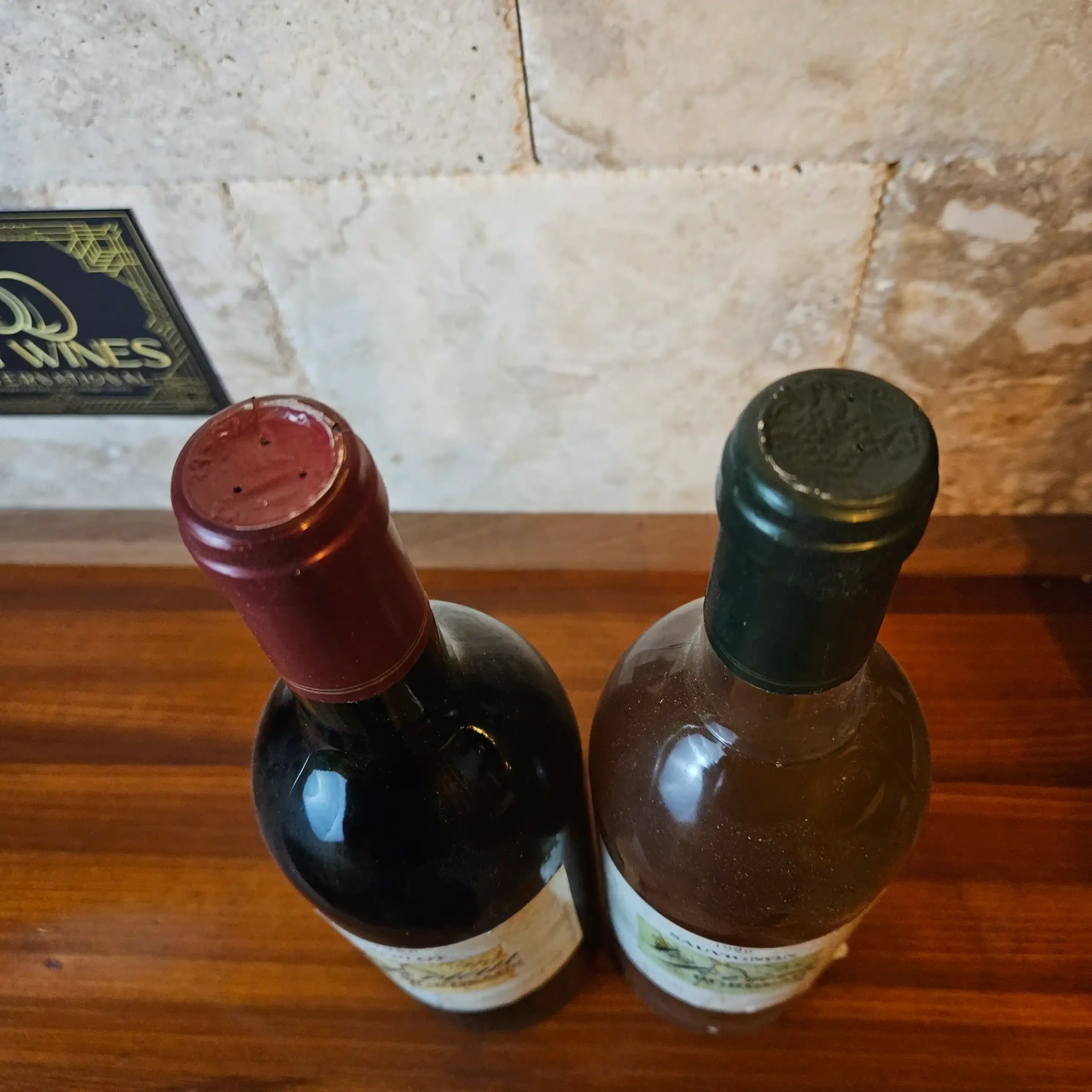 Outstanding condition. Some noticeable sediment in the white Sauvignon wine.