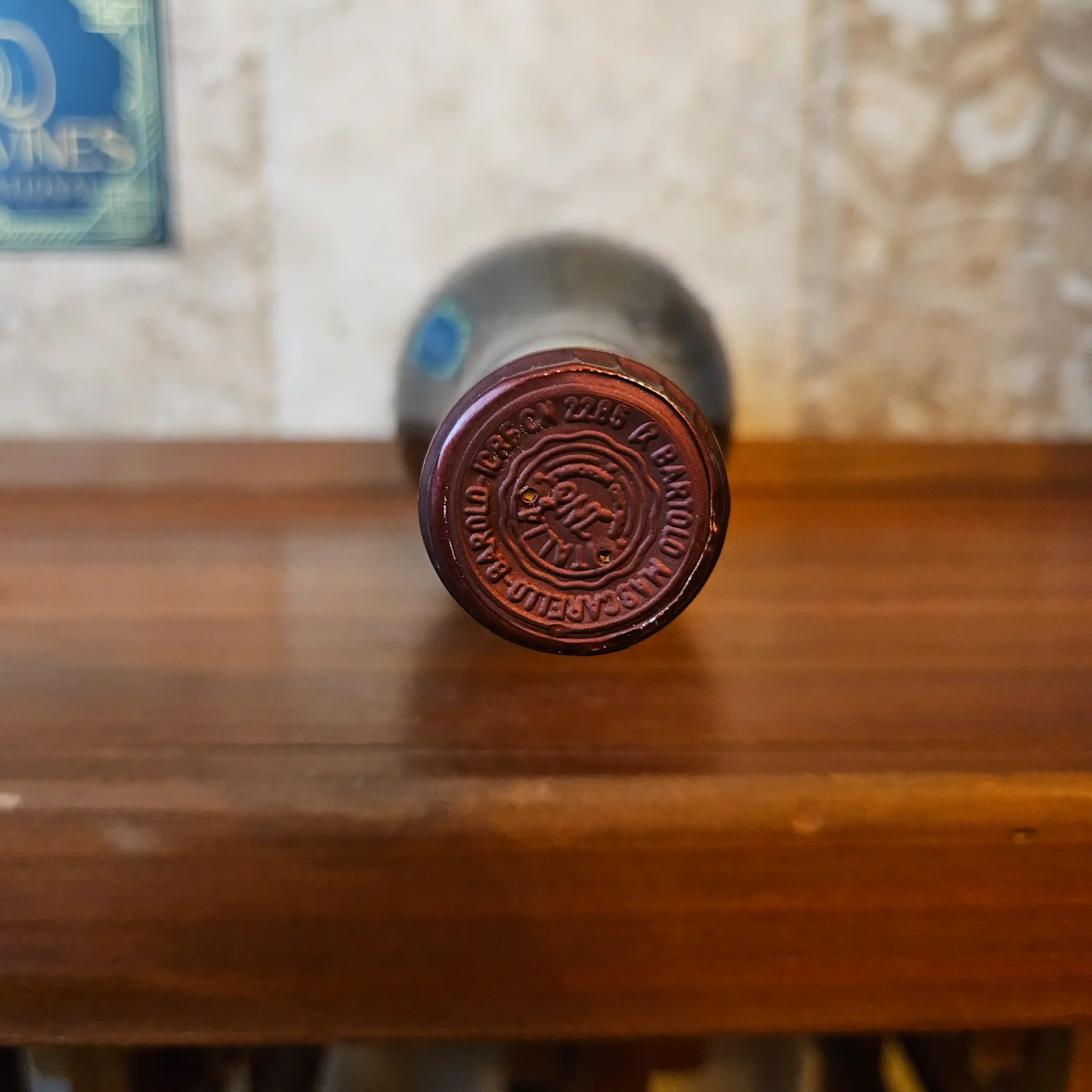 Always stored on its side in a climate-controlled cellar.