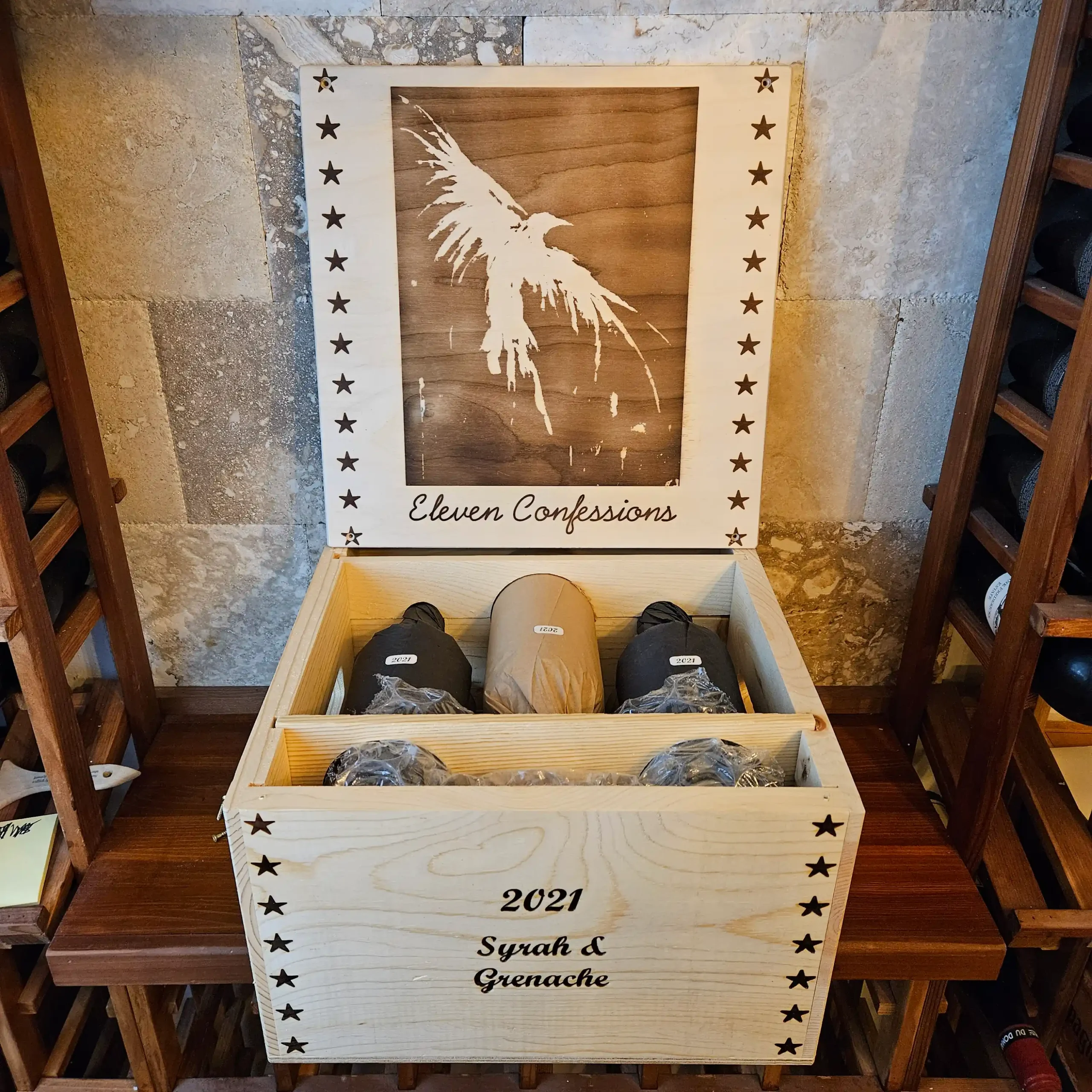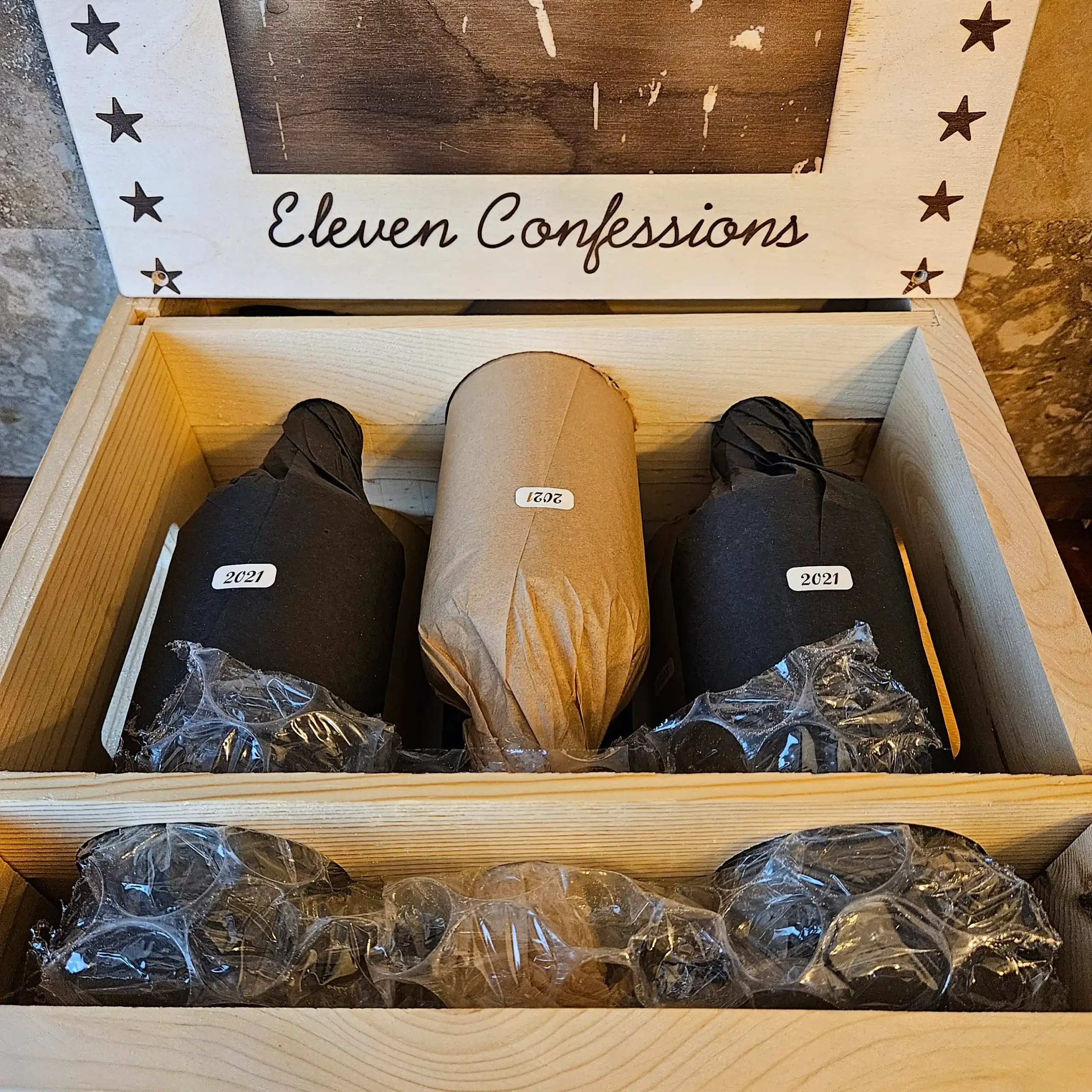 This case includes (3) bottles of the 2021 Eleven Confessions Syrah and (3) bottles of the 2021 Eleven Confessions Grenache