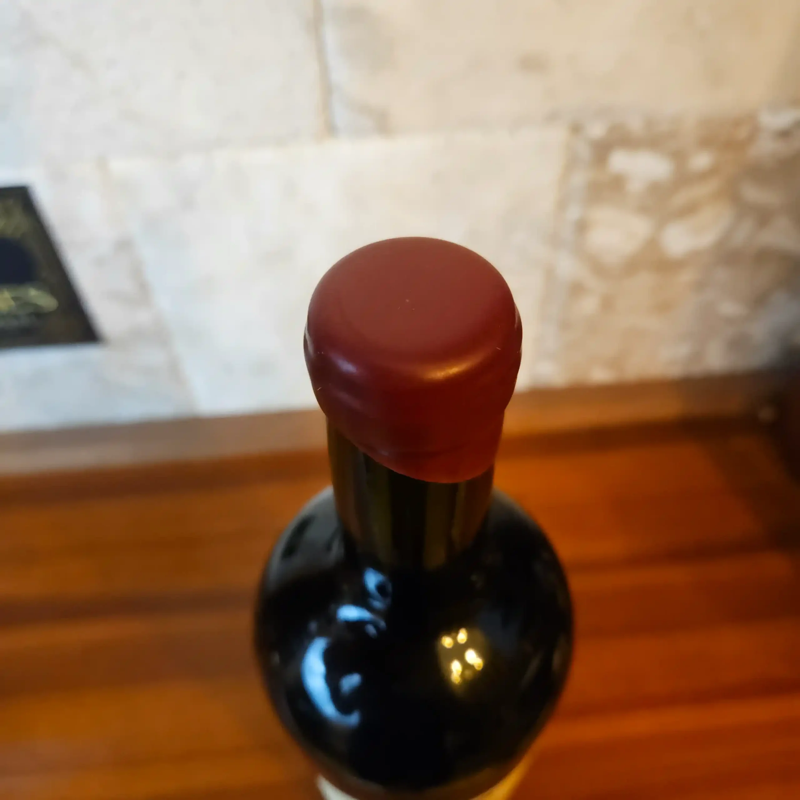 Always stored on its side in a climate-controlled cellar.