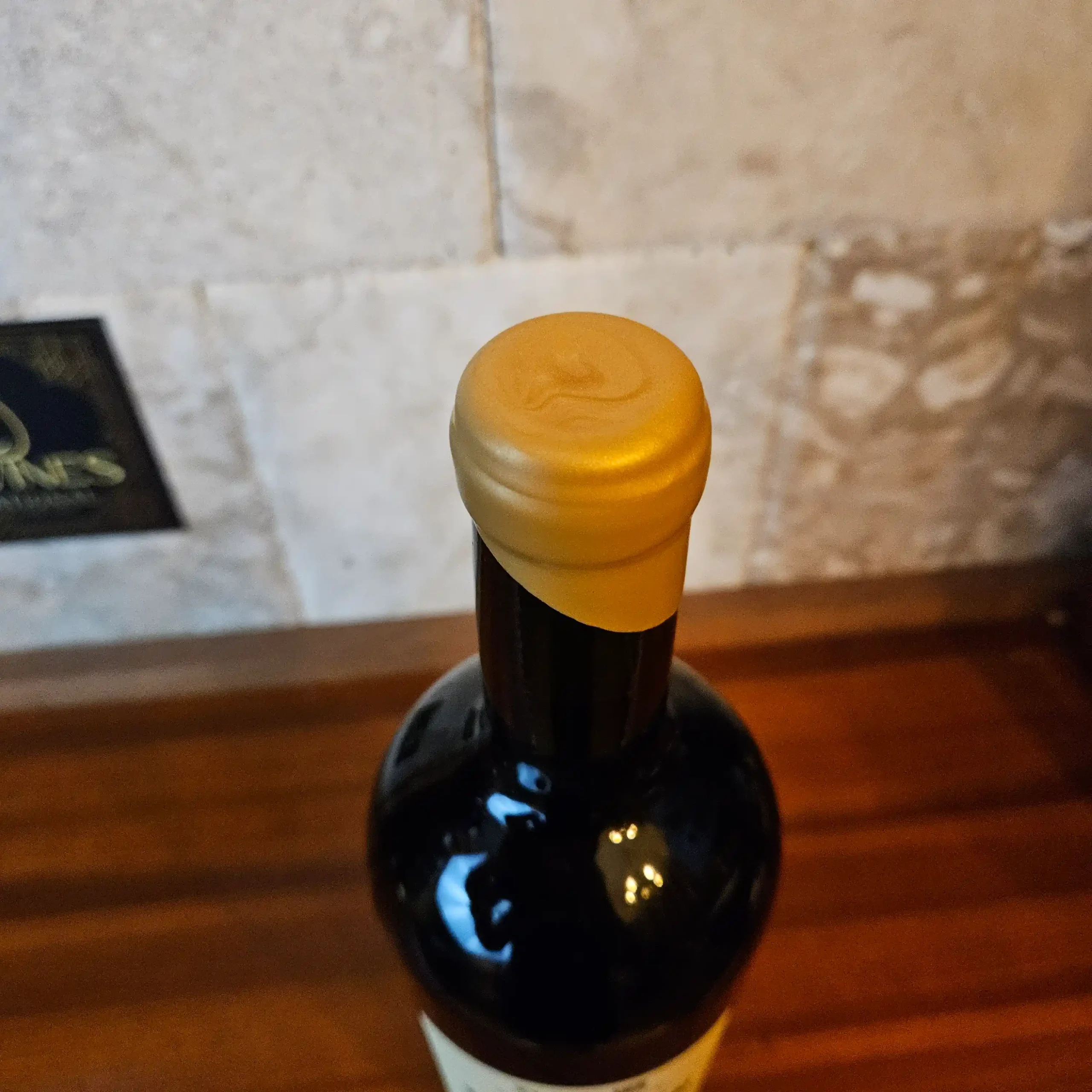Always stored on its side in a climate-controlled cellar.