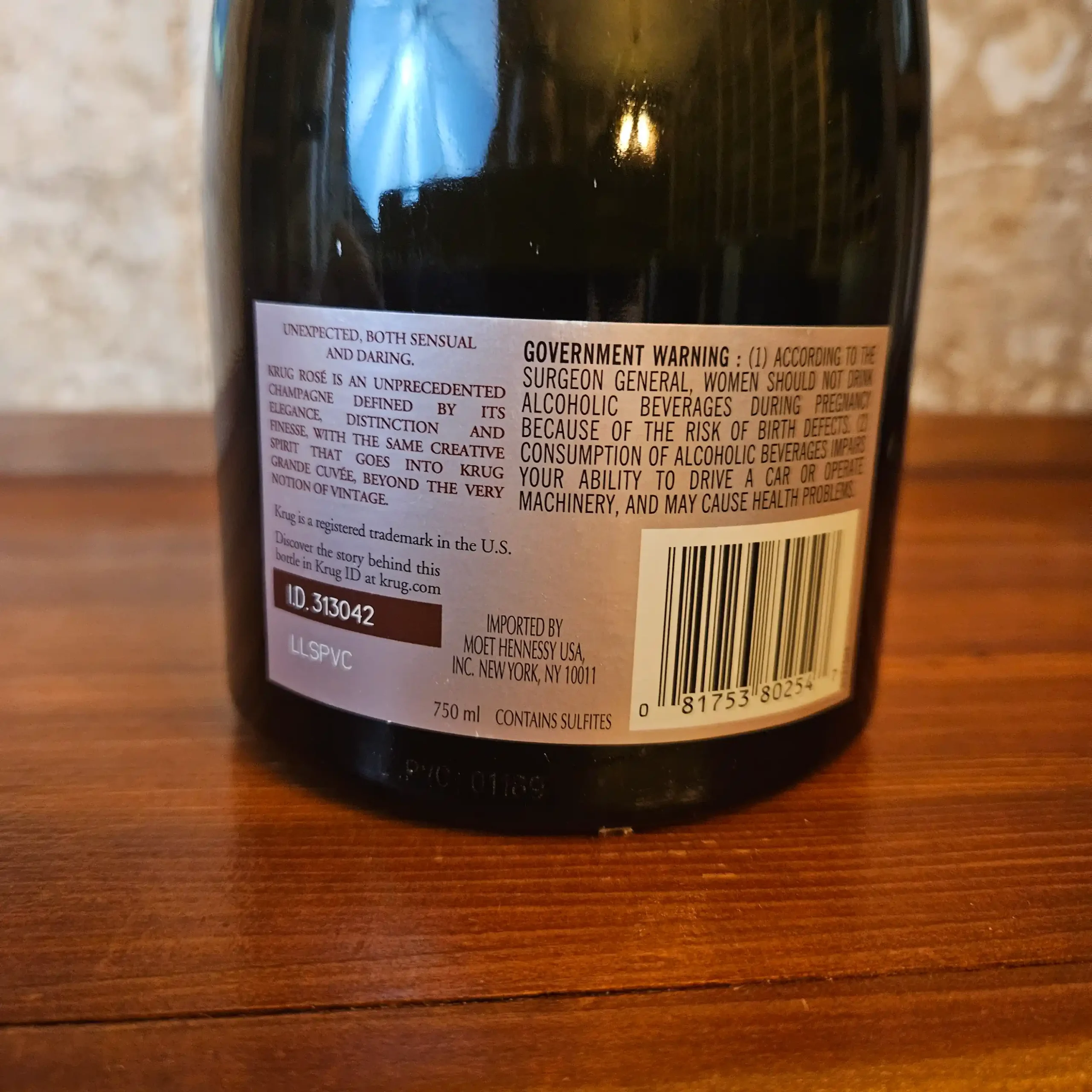 The Krug ID on this bottle indicates that it is the 19eme edition. Composed around the harvest of 2006, Krug Rosé 19ème Édition is a blend of 37 wines from 5 different years, the youngest from 2006, and the oldest from 2000.