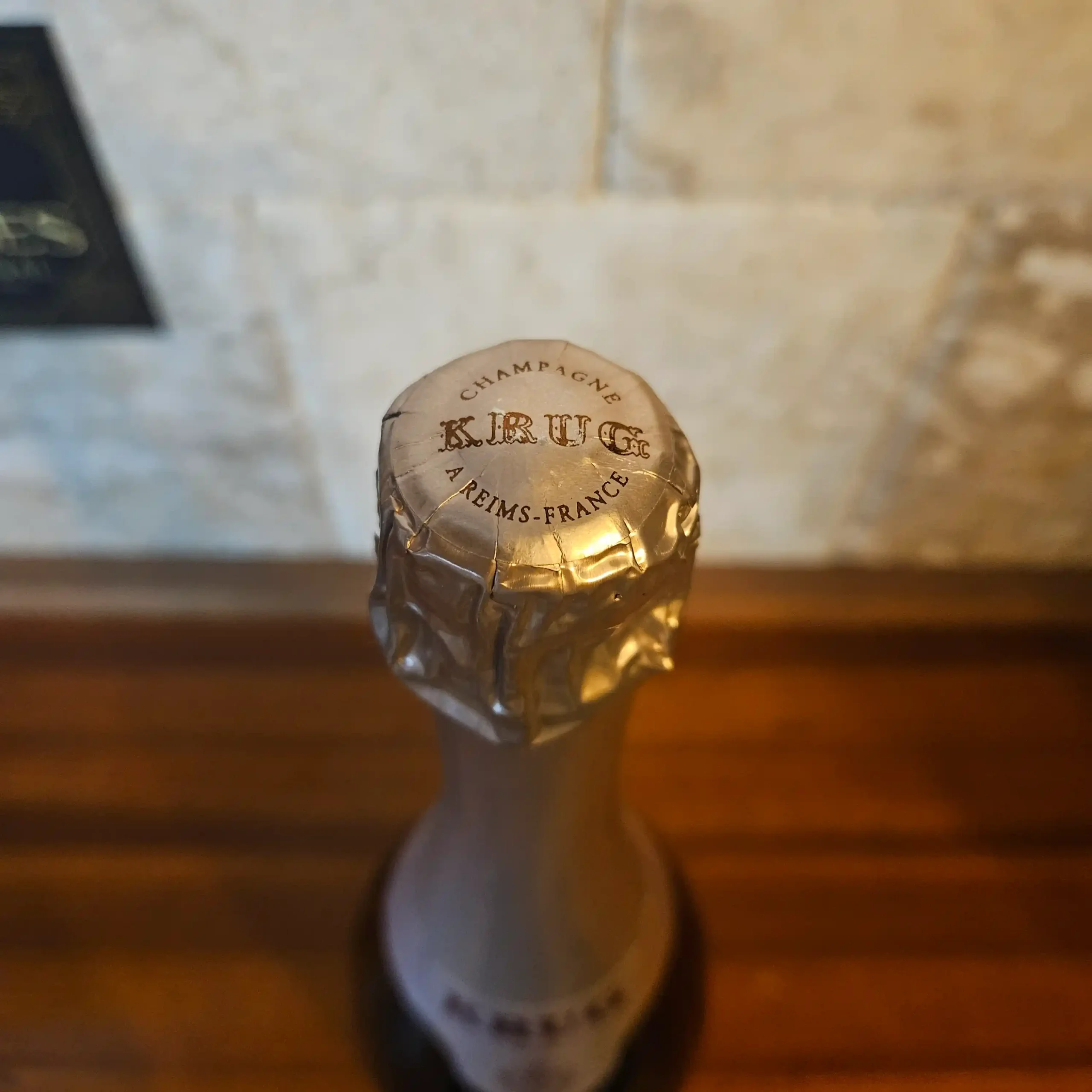 Always stored on its side in a climate-controlled cellar.