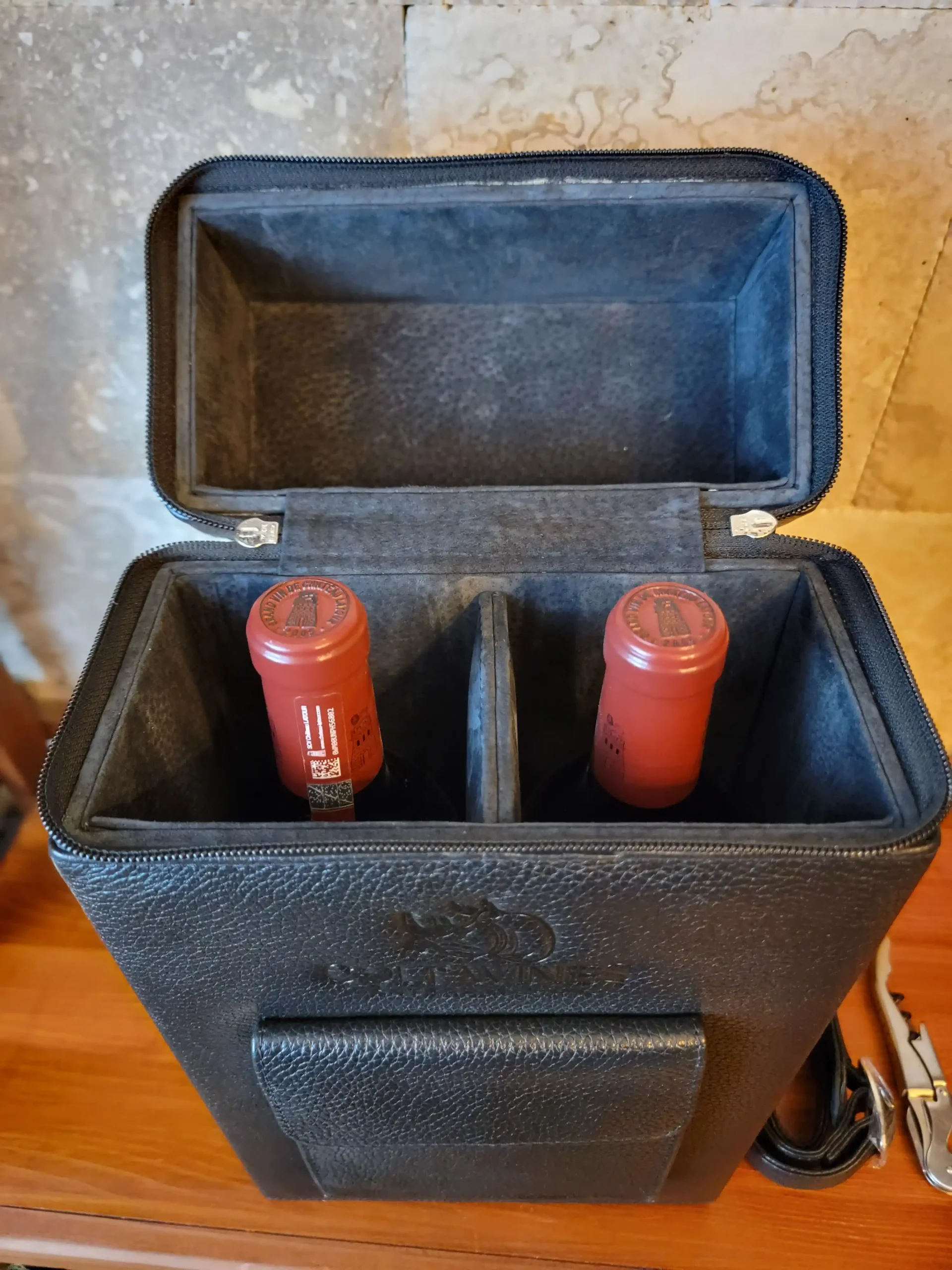 - Beautiful wine tote made from genuine leather in collaboration with Royce New York