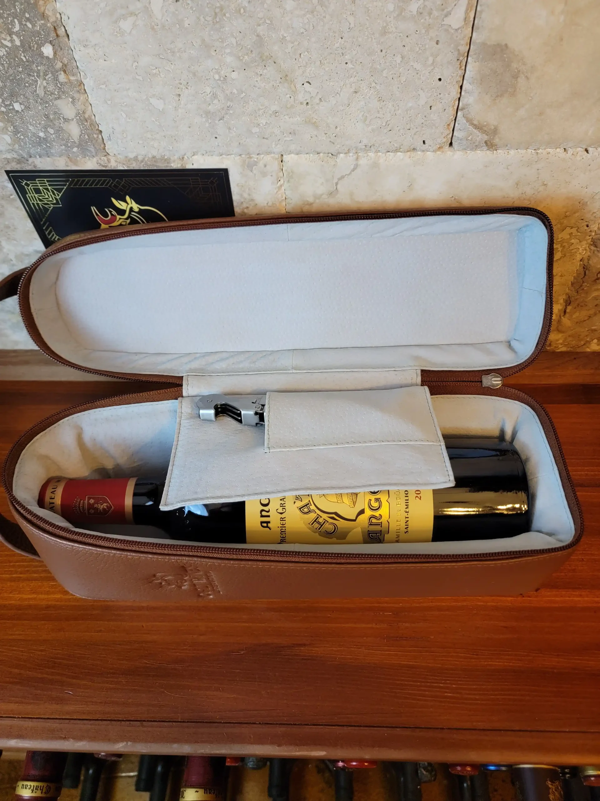 - There is a storage pocket ideally suited for a corkscrew
