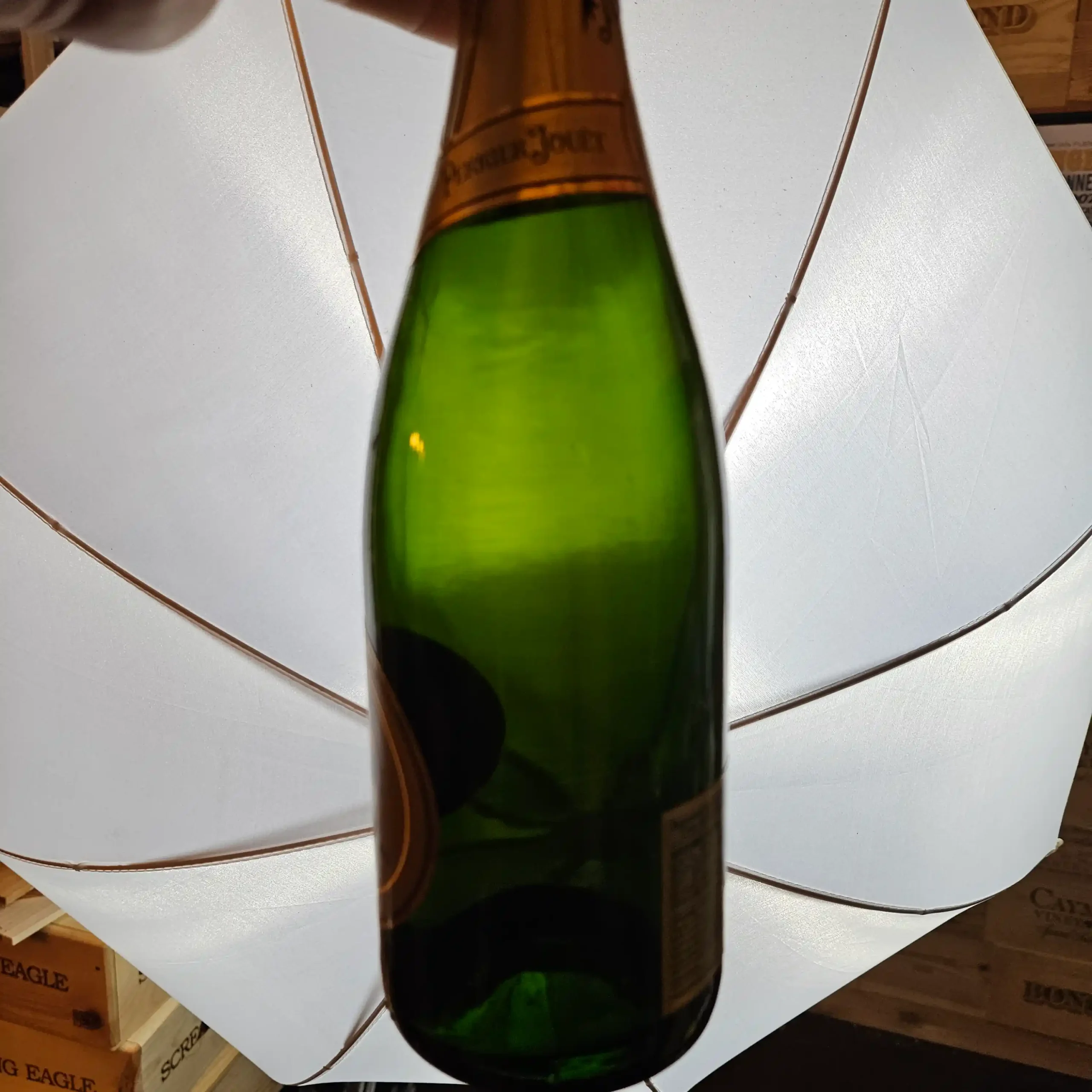 Always stored on its side in a climate-controlled cellar.